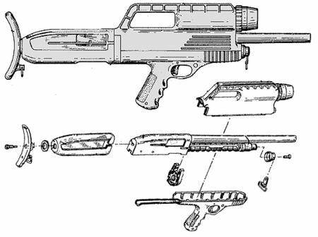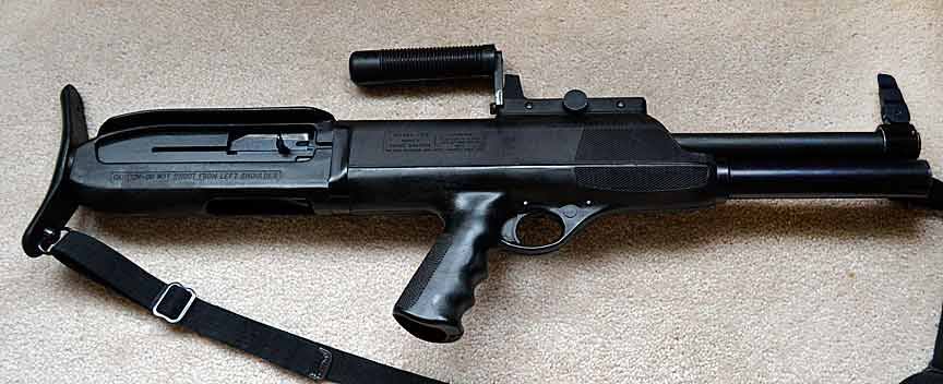 После неоднократных обращений в различные оружейные фирмы Кроуч в конце концов продал в 1965 году свое изобретение американской компании High Standard Manufacturing Co, производившей различные гладкоствольные ружья и самозарядные пистолеты. Инженеры High Standard переработали концепцию Кроуча, заменив цельную алюминиевую ложу пластиковой, собранной из трех основных частей, а также добавили в конструкцию такие полезные с точки зрения боевого оружия детали, как интегральную рукоятку для переноски и боевой фонарь, расположенный над стволом в передней части рукоятки. Основой нового оружия стал газоотводный самозарядный дробовик компании High Standard модели Flite King 12 калибра.